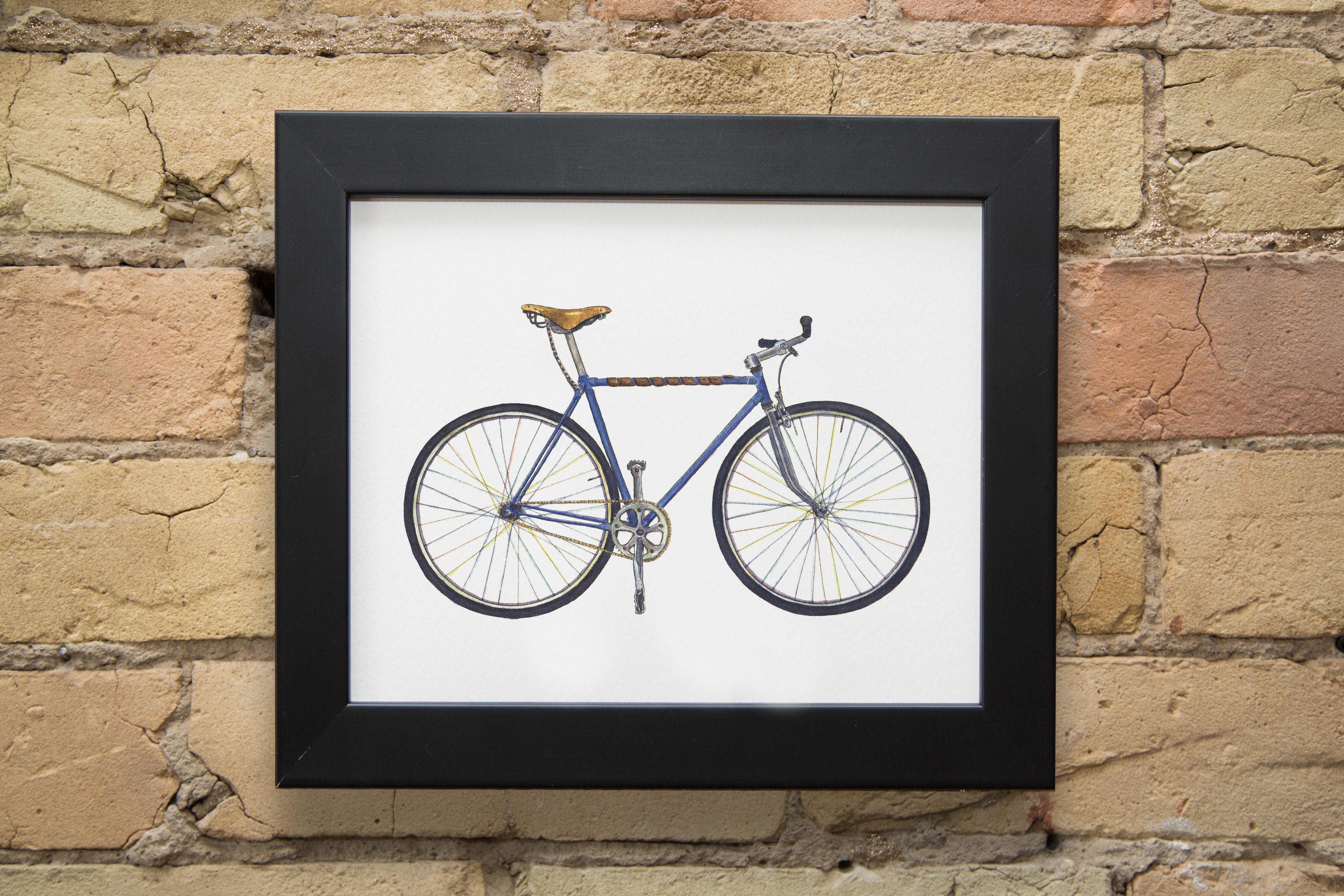 Biancha is the beloved single-speed bicycle of my friend Eric, who built her himself and commissioned me to draw her portrait. There is only one Biancha in the world, and Eric is tickled that she is now placed on the walls in homes all over the world.